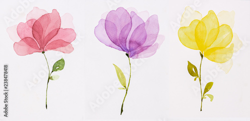 View Full Picture Water Colour Hand Draw Red Flowers Purple Yellow